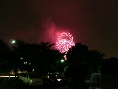 大きな空高く上がる花火を鑑賞。。。